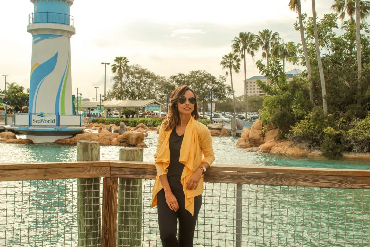 Preciso falar da Bruna Costa, fotógrafa querida que encontrei pelo caminho da viagem. Ela me convidou para fazer um ensaio no SeaWorld e eu adorei. Olha como rendeu fotos lindas, até mesmo depois de ir na montanha-russa que não volto nunca mais… a tal da MAKO (olha lá no meu Instagram o relato emocionante que eu fiz! Rs). Juro, sou super aventureira, fui em todas as montanhas de todos os parques que visitei, mas essa aí, Jesus… volto mais não! Não curto a sensação de ficar solta sem ter cinto de segurança preso nos ombros, e só fui me dar conta de que ela só prendia na cintura quando eu e minha acompanhante da aventura já estávamos chegando perto de embarcar. Aí não ia amarelar né? De qualquer forma, ela é daquelas para colocar na lista se você gosta de muita adrenalina e aventura.