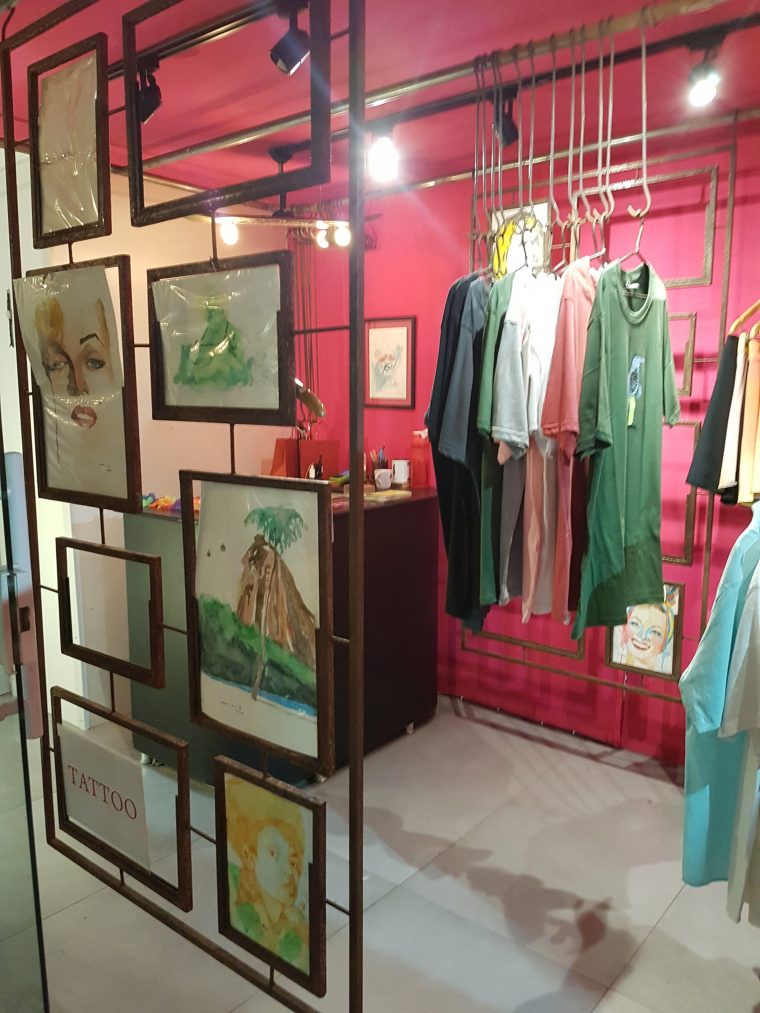 Já a VENICE cloth é uma marca masculina, com design das estampas desenvolvidas pelo artista Marcos Carmargo, que também produz aquarelas disponíveis na loja. O espaço é um mix de moda e galeria de arte. Ainda possui um espaço “baby” logo em frente, que faz tatuagens.